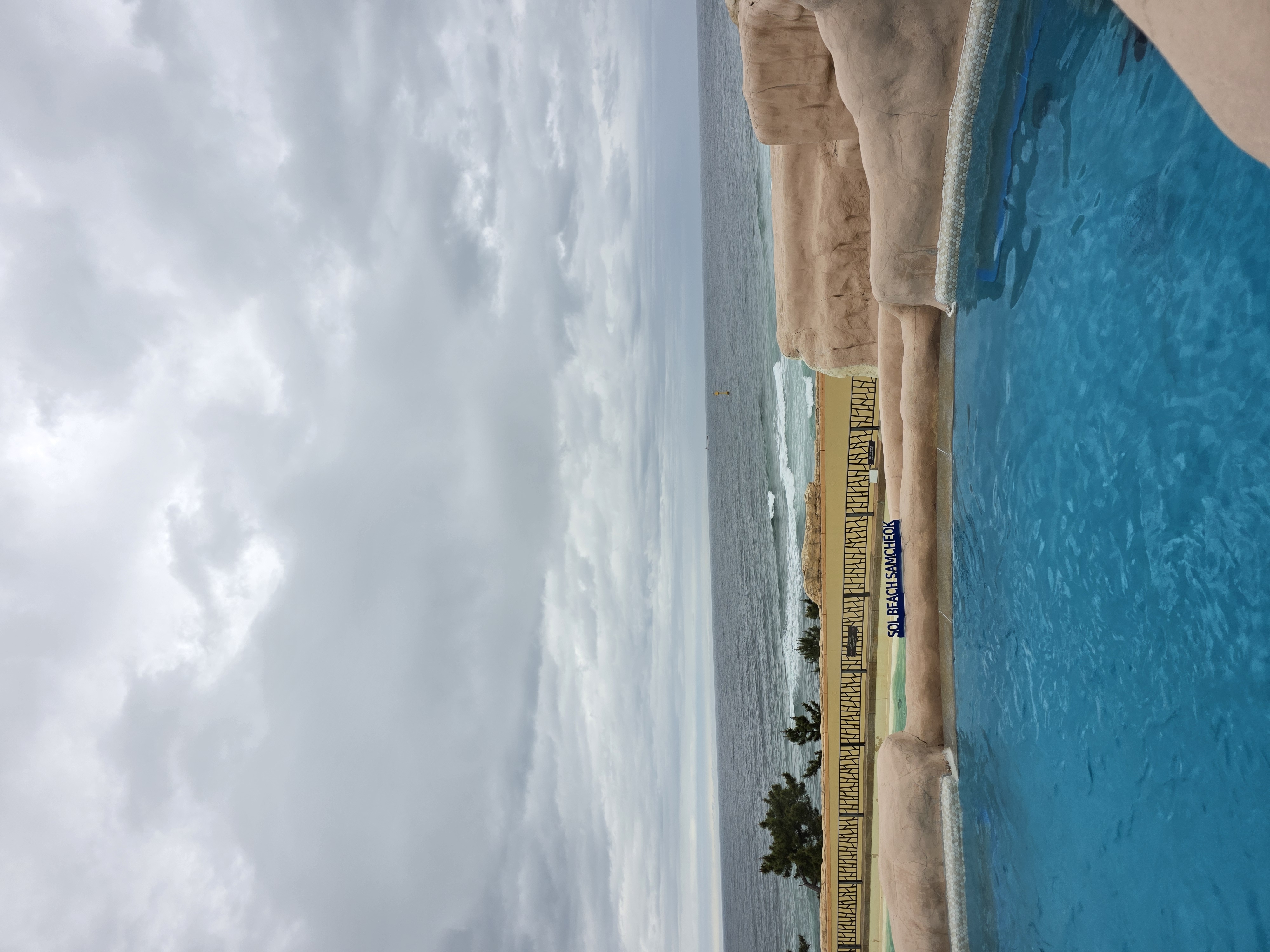 야외에서 바라보는 바다 뷰는 ... 날씨만 좋았다면 더 좋았겠지만 날씨요괴인 저는 이런 흐릿한 날씨가 익숙하네요 . (하하)