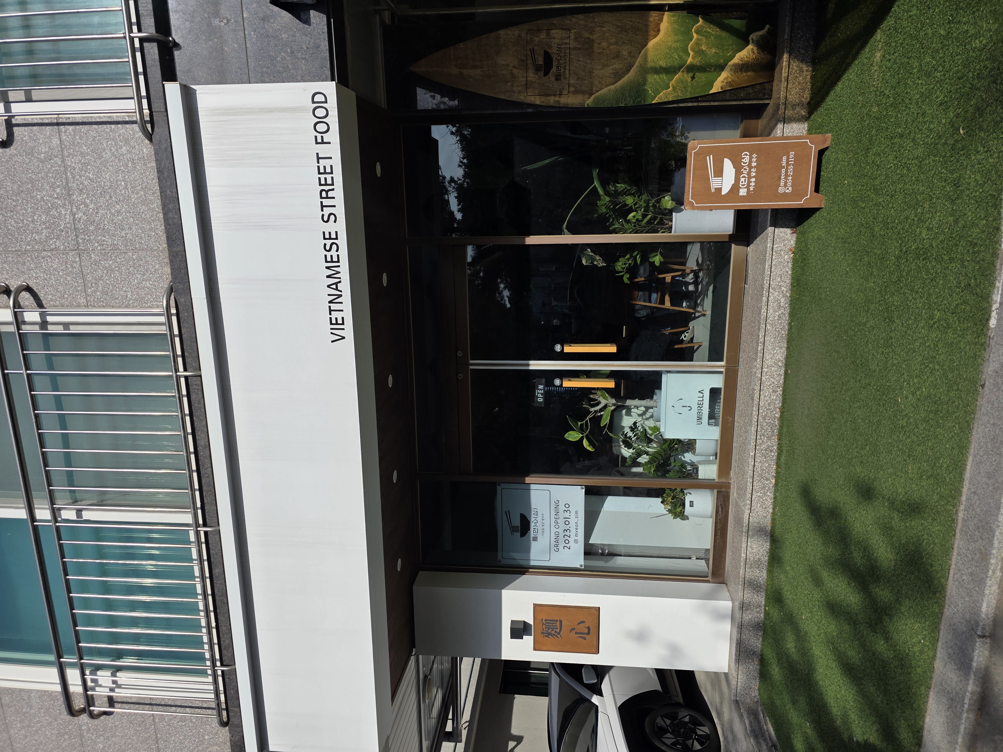 면심은 '베트남 스트리트 푸드'라는 문구가 적힌 화이트톤의 깔끔한 건물에 자리 잡고 있습니다.