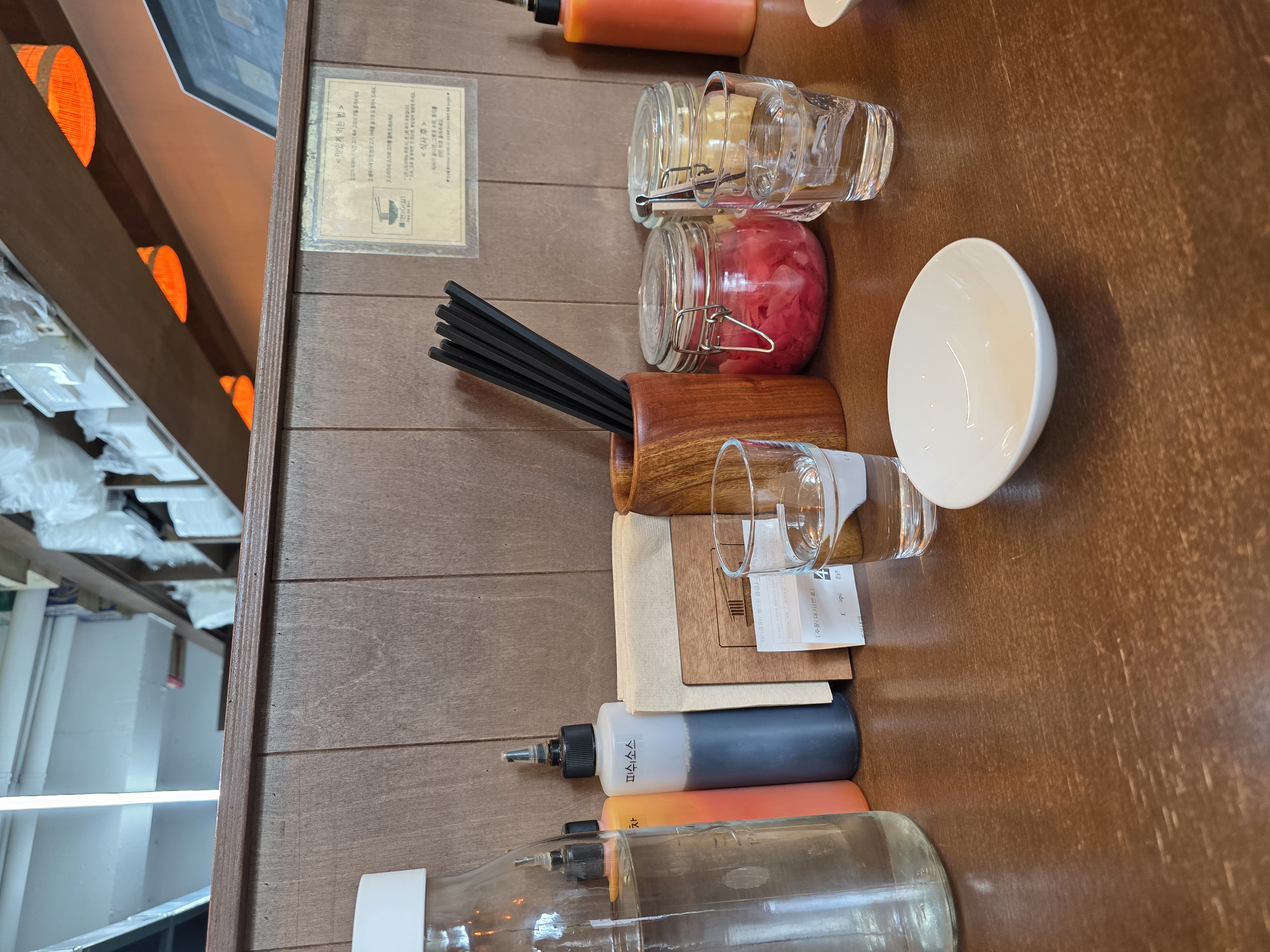 주문은 입구 쪽 키오스크에서 이용하는 것이고, 사장님 혼자하시는 가게라서 좌석이 없으면 키오스크 주문하고 기다렸다가 자리를 잡아야 해요. 좌석이 'ㄱ'자로 바 형이라서 금방 자리가 나지만 웨이팅은 2번 정도 했어요.